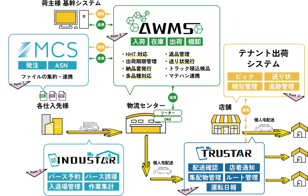 バース管理・WMS・テナント出荷・配送管理までリアルタイムにデータを連携したEC物流プラットフォームを構築